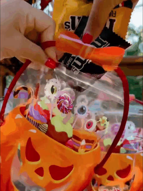Each bag is creatively designed in pumpkin 🎃 or cauldron 🧙♀️ shapes, decorated with fun Halloween elements like candies 🍬, bats 🦇, and witches’ brew 🧪 The see-through front window not only adds a playful peek-inside touch 👀 but also makes storage and display effortless.